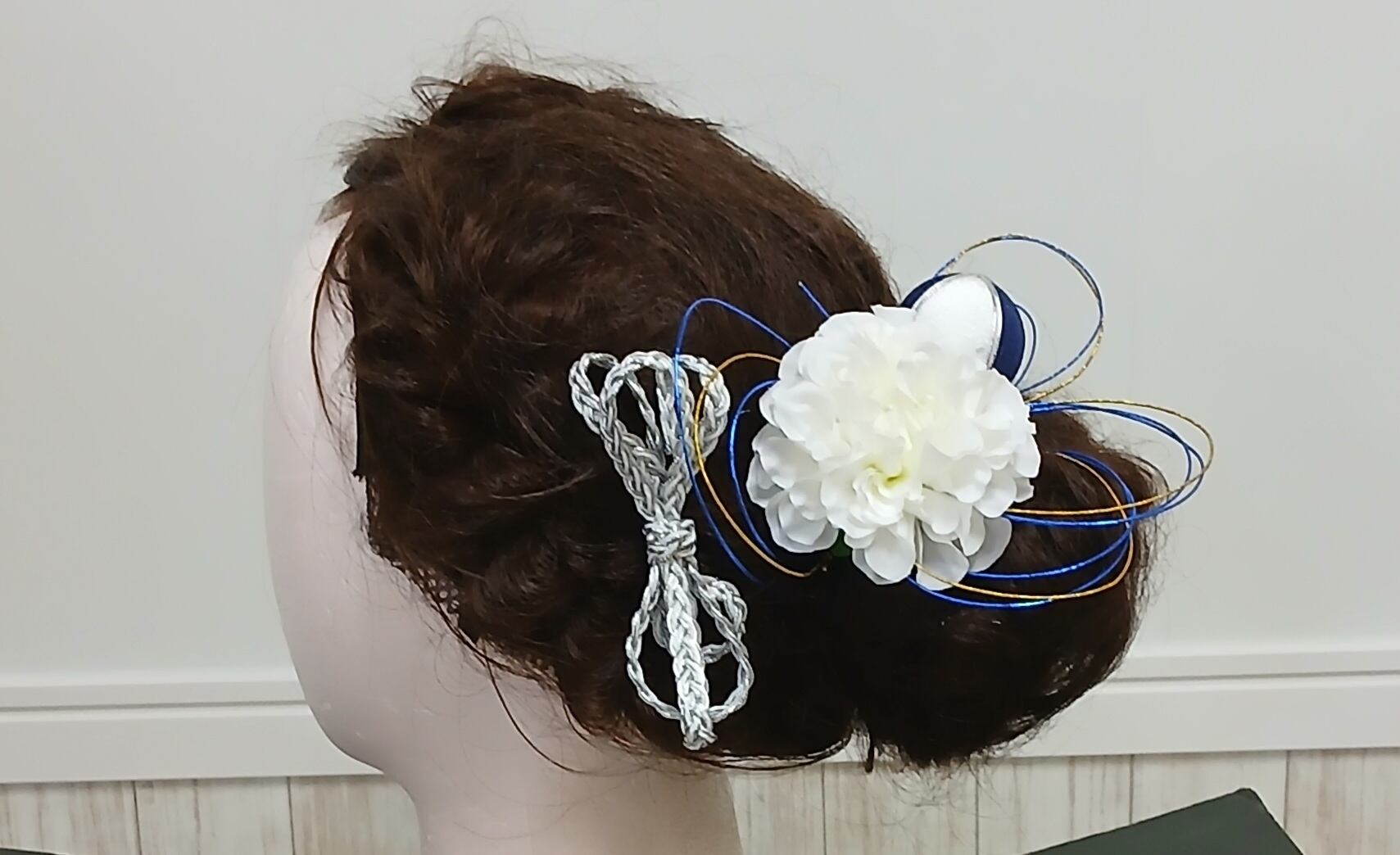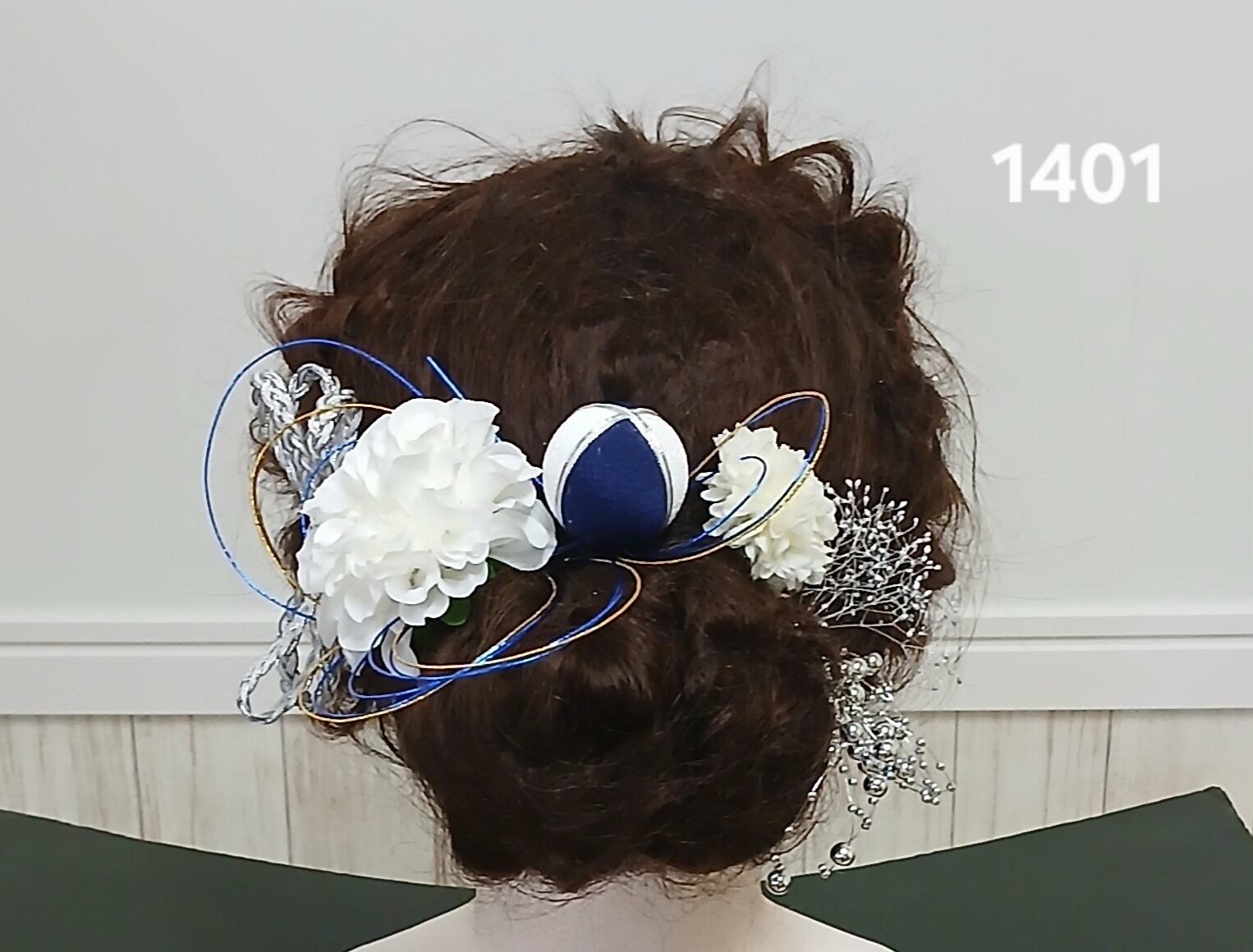 No.1401は、シンプルでありながらも洗練された印象を与える、紺色のつまみ細工を使ったアイテムです。優雅なシルバー系のアクセントが際立ち、あなたの装いに特別な魅力をプラスします。このアイテムを身に着けることで、日常のコーディネートが華やかに演出されることでしょう。